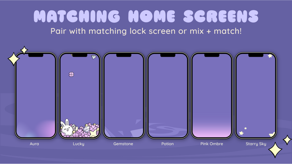 - 6 lock & home screen wallpaper sets – choose from Aura, Potion, Lucky, Starry Sky & Gemstone